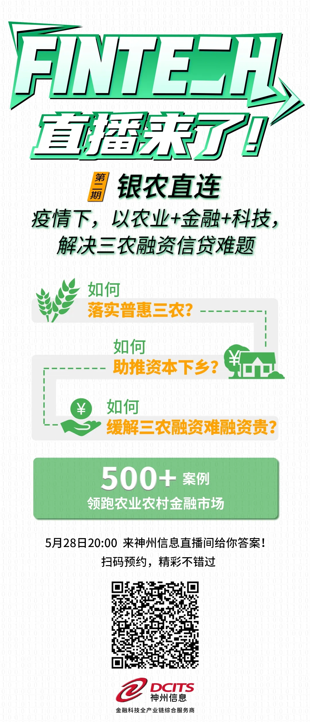 【FinTech直播来了!】第二期: 银农直连——疫情之下,以农业+金融+科技解决三农融资信贷难题