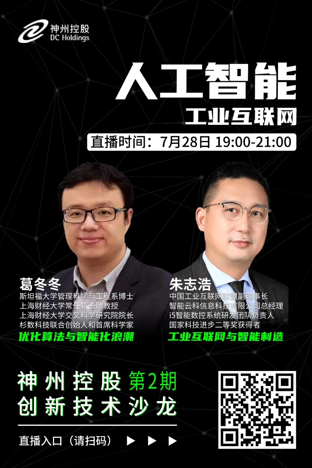 7月28日,在《人工智能—工业互联网》的主题下,神州控股创新技术沙龙第2期将邀请运筹学专家葛冬冬博士、中国工业互联网联盟副理事长朱志浩先生,就运用优化算法建立智能化的复杂决策系统和工业互联网对智能制造的赋能实践,与大家做精彩的分享(长按识别上方海报中的二维码即可观看直播)